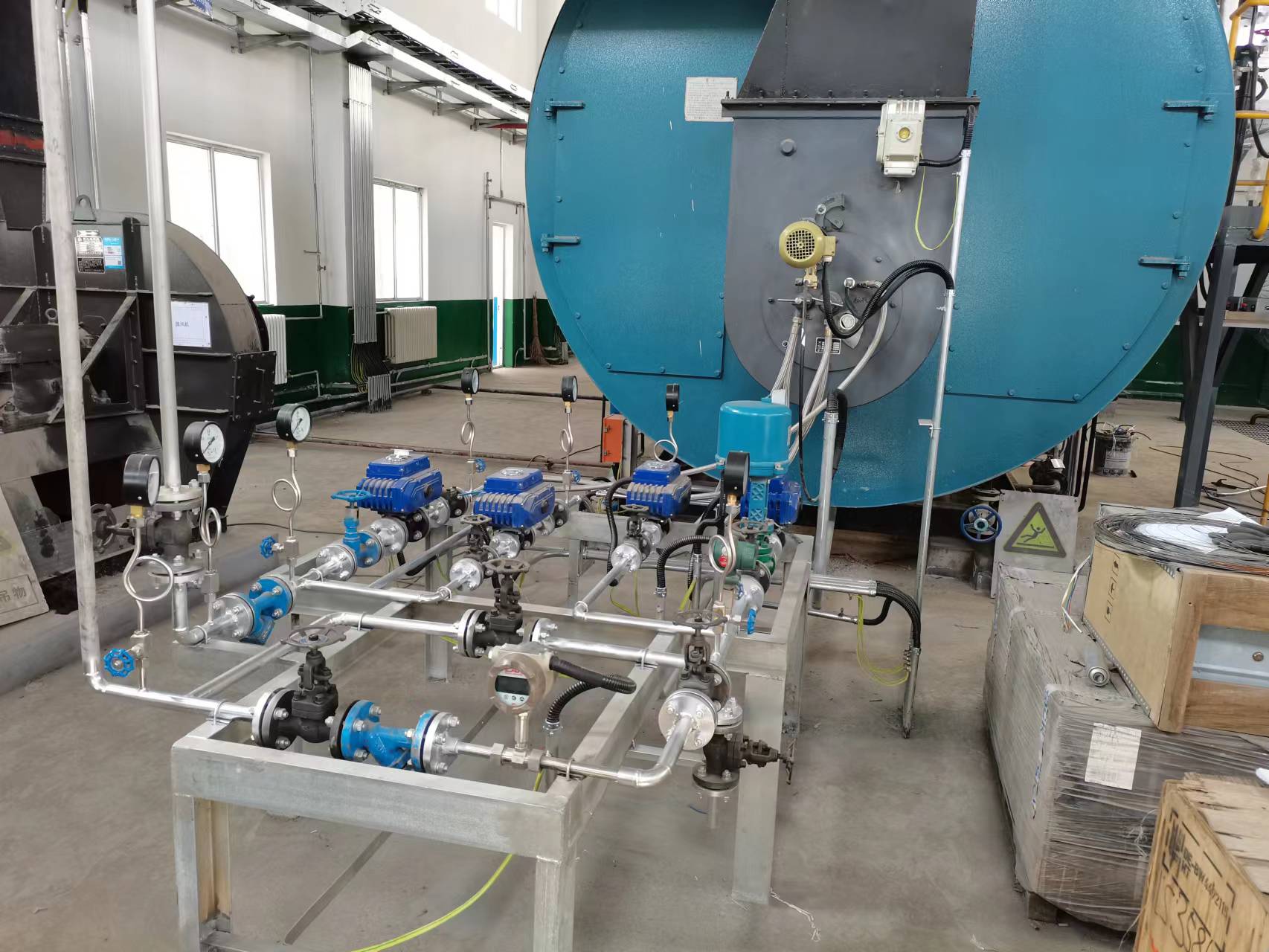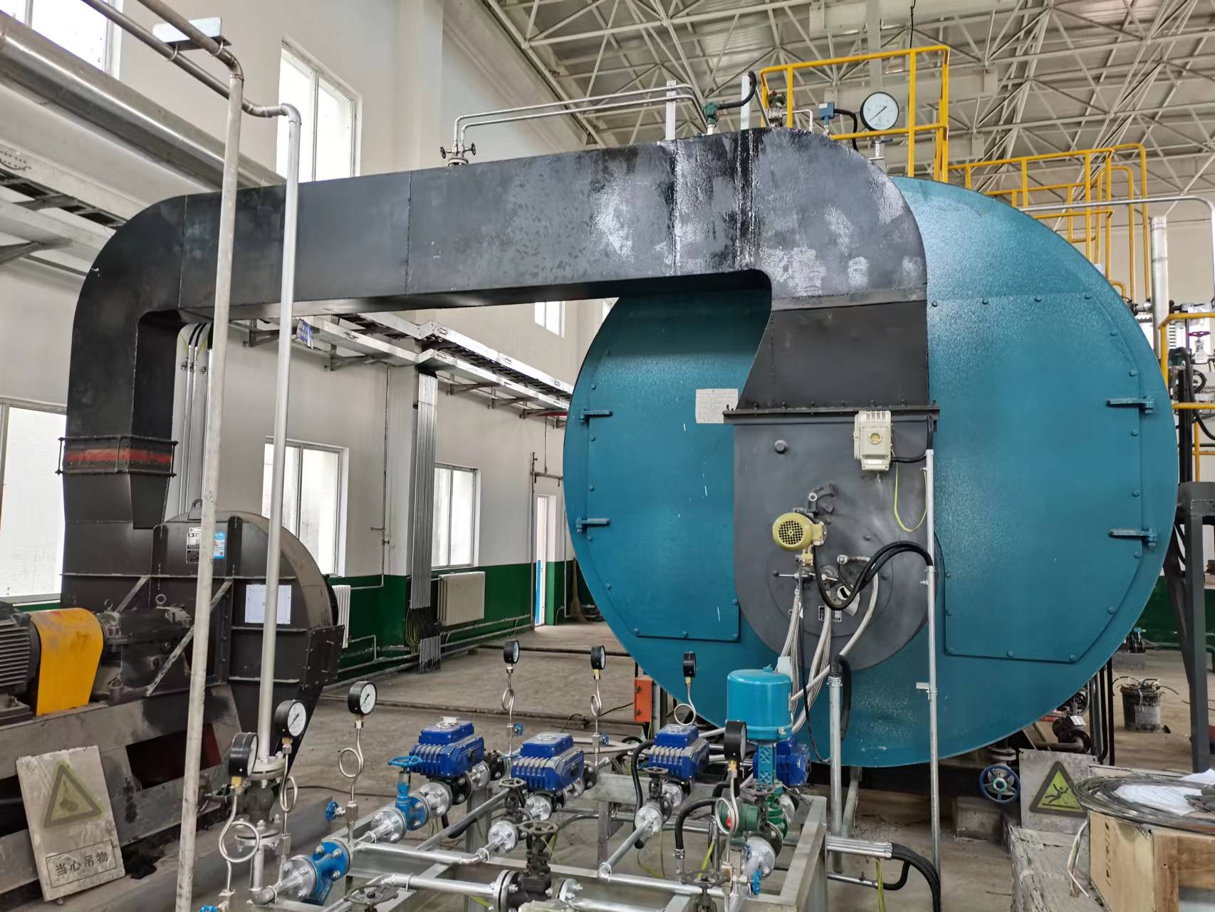 鍋爐為臥式內(nèi)燃、三回程濕背式結(jié)構(gòu),燃料為甲醇。常規(guī)一體機沒有適用這么大負荷鍋爐的成品,我公司定制設(shè)計滿足此鍋爐的甲醇燃燒器。