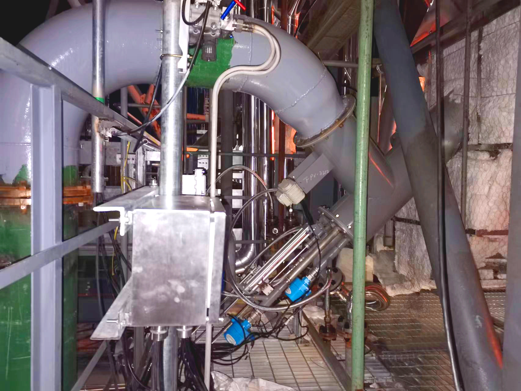 現(xiàn)場煙氣溫度僅有60℃,需要將煙氣溫度升溫至240~260℃。為了減少改造量,采取直燃式燃燒器,即在煙道上開孔安裝1臺燃用天然氣燃燒器。根據(jù)使用方提供的煙氣分析數(shù)據(jù)和燃料氣分析資料,計算確定煙道截面、煙道出口煙氣溫度和燃燒器布置。采用的設(shè)計方案和設(shè)計數(shù)據(jù)必須確保燃燒完全,爐內(nèi)溫度場均勻。燃燒器設(shè)計應(yīng)能抑制NOx和CO的生成。煙道燃燒器設(shè)計應(yīng)能保證煙氣混合均勻,出口煙氣溫度保持穩(wěn)定,并保證煙道燃燒器長期穩(wěn)定運行。